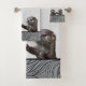 Bath Wild Animals Weasels - Baby Otters Cute towels. Bathtime With Otters Bath Towel Set. Bath room for kids or adults. Cute otters and flower fauna in hues of purple on black background theme that you can customize background, colors, images and more. Pictures of otters doing otter things. Cute antics from these creatures of water. You can customize the colors of your towels to match your bathroom theme decor. Great gift for kids and those that love otters.