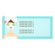 Destei's cute cartoon illustration of a brunette woman wearing a towel on her head and body and having a white face mask on her face together with cucumbers on her eyes and a pink flower by her ear. The background colour is soft light blue with a cute polka dots pattern.