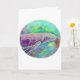 This colourful batik design greeting card features a humpback whale drawing of a head, eye and fins underwater. Purple, teal, maroon, navy and yellow swirl together to create the watery undersea art.