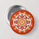 Button in a batik textured mandala / medallion pattern in shades of terracotta, cream and deep rust red
