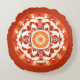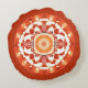 Round pillow in a batik textured mandala / medallion pattern in shades of terracotta, cream and deep rust red