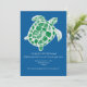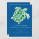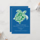 A green batik-like loggerhead sea turtle on a royal blue background serves as a customisable kids or Adults Birthday Party Invitation. Perfect for the marine conservationist or future marine biologist.