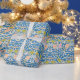 Batik Style Pattern Dots Flowers Blue Background Wrapping Paper