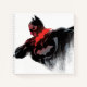 This striking artwork captures Batman as he emerges from the shadows, reflecting his dual nature as both a symbol of hope and an avenger cloaked in darkness. The graphic utilises a stark contrast between the deep blacks and vivid reds to emphasise Batman’s intense and complex persona. The left side shows Batman partially obscured by a smoky, textured effect, symbolising the mystery and the enigmatic qualities of his character. The right side reveals his determined profile in clear, bold colours, highlighting his unwavering resolve to fight crime. This artistic depiction combines modern design elements with classic superhero imagery, creating a powerful visual representation of Batman’s ceaseless vigil over Gotham City.