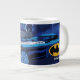 This graphic vividly captures Batman speeding through the neon-lit streets of Gotham City in his iconic Batmobile. Above him, the Bat-Signal shines brightly against a deep blue sky, calling him to duty. The artwork uses a striking colour palette of blues and vibrant yellow highlights, emphasising the high-speed energy and the futuristic aesthetic of the Batmobile. The urban landscape of Gotham is rendered with bold, exaggerated forms, giving the scene a dynamic and slightly surreal feel. This illustration not only celebrates Batman's role as the guardian of Gotham but also his reliance on technology and cunning to maintain order in a city that never sleeps. The image is a thrilling representation of Batman in action, perfectly blending elements of danger, heroism, and adventure.