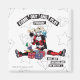 Harley Quinn is sitting and playing with a lit bomb and several jack-in-the-box toys featuring The Joker inside. The words "Come out and play Puddin'" are stamped over her head.