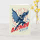 Batman with hi-tech cape and grid lined Bat Logo that reads "Batman Into Action".