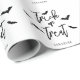 Wrap your Halloween gifts in style with this modern black and white design. Featuring Trick or Treat script typography with bat silhouettes, this minimalist wrapping paper adds a festive yet sophisticated touch. A personalizable text area underneath lets you include a name, greeting or custom message, making it perfect for party favours, seasonal gifts or special holiday surprises.