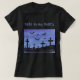 A tiny watercolor landscape of bats in flight over a cemetery at night adorns this fun Halloween shirt. Customise by changing the text to suit yourself!