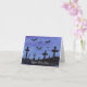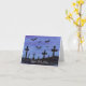 A tiny watercolor landscape of bats in flight over a cemetery at night adorns this spooky Halloween card. Customise by changing the text to suit yourself!
