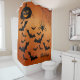 Halloween design with black evil pumpkin, bats, and spider over an orange background
