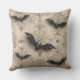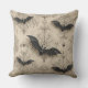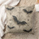 This Gothic throw pillow has a design of bats and spider webs on it.