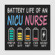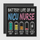 Humorous shift chart showing the battery life of a NICU nurse, also known as a neonatal intensive care unit nurse, with colorful levels from start to double shift. Ideal for neonatal nurses who enjoy relatable workplace humor.