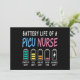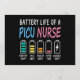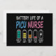 Humorous shift chart showing the battery life of a PICU nurse, also known as a pediatric intensive care nurse, with colorful levels from start to double shift. Ideal for pediatric ICU staff who enjoy relatable workplace humor.
