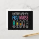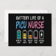 Humorous shift chart showing the battery life of a PICU nurse, also known as a pediatric intensive care nurse, with colorful levels from start to double shift. Ideal for pediatric ICU staff who enjoy relatable workplace humor.