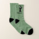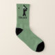 This cricketer is has bat high in the air and wears a distinctive white cap. The silhouette is repeated on the outside ankle of both feet, showing the player sending the cricket ball flying. Seen here on an attractive shade of green but you can customise for a different background colour as needed. You also have the option to change the text to initials or a short name. Note: The image and text will show on the outer side of each sock, the inner side will be a plain colour.