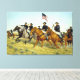 Battle of Prairie Dog Creek by Ralph Heinz. Western Kansas -- August 21, 1867 After the Civil War, settlers rushed to the rich and relatively empty lands of the Great Plains. By mid-1867 the Plains Indian tribes recognising the threat to their traditional way of life, were regularly attacking settlers, railroad workers and travelers. When the angry and frightened citizens of Kansas demanded military help, the War Department authorised placing volunteer militia units on active duty during the emergency. On July 15, 1867, four companies of the 18th Kansas Volunteer Cavalry were mustered into Federal service. Under command of Captain Horace L. Moore, the 18th set out immediately for a month of vigourous campaigning. Returning to camp at Ft. Hays, then in the midst of a cholera epidemic, the Kansans then joined forces with the 10th U.S. Cavalry, the famous black "Buffalo Soldiers." A combined force of 135 men, commanded by Captain George A. Armes of the 10th, rode down the Saline River; Captain Moore, with 125 Kansans, scouted upstream. The two groups had lost contact with each other when Captain Armes' group was struck by 300 to 400 Kiowas and Cheyennes under the great war chiefs Satanta and Roman Nose. As Armes' group of men held their ground through fierce fighting, the men of the 18th Kansas, hearing the noise of battle, managed to fight their way through to Armes. To break the stalemate, Captain Armes formed a party for a charge on the Indians. Led by Armes, the force of about 20 black regulars and regulars and Kansas volunteers moved first towards Prairie Dog Creek, and then, turning charged up the hill towards the main body of warriors. The Indians broke and scattered, ending the day's fighting. The cavalry had lost 3 men dead and 36 wounded; the Indians, 50 dead and 150 wounded. The Battle of Prairie Dog ended the U.S. offensive operations on the Kansas frontier for the year, and in the fall treaties were signed with the tribes of the Southern Plains. The proud tradition of the 18th Kansas Volunteer Cavalry is carried on today by the men and women of the Kansas Army and Air National Guard. All Prints are presented & displayed at the largest size/resolution available. The system will prevent you from choosing a size larger than the image is capable. Range through the sizes available from smallest to largest and choose your size of choice.