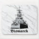 Mousepad with drawing of the famous German battleship Bismarck of world war II with the name of the ship written with fraktur letters.