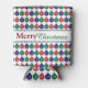 Christmas can coolers with a red, green and blue bauble pattern and "Merry Christmas" greeting.
