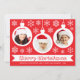 On the back, there is a family photo, with snowflakes in the corners, and a longer message, also on red background.