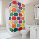 This shower curtain has a Bauhaus design of rounded rectangles strung together in rows.