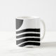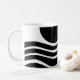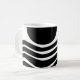 This mug has Bauhaus design of wavy lines and circles in black on a field of white.