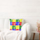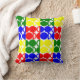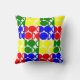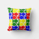 This throw pillow has a Bauhaus design of repeating circles and semicircles in red, green, blue, and yellow. Like this design but want different colours? Message me.