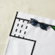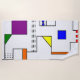 This beach towel has a Bauhaus design of lines going vertically and horizontally to make a grid with squares, rectangles, triangles, and circles placed around the grid. If you like the design but prefer different colours, message me.