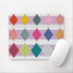 This mouse pad has a Bauhaus design of diamonds on purple strips with a design meant to look like quilting.