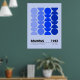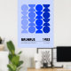 Minimalist Bauhaus-style poster featuring geometric blue circular patterns, advertising the 1923 exhibition held from July to September.