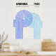 Minimalist Bauhaus-style poster featuring geometric blue circular patterns, advertising the 1923 exhibition held from July to September.
