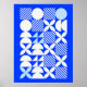 Minimalist Bauhaus-style poster featuring geometric blue circular patterns, advertising the 1923 exhibition held from July to September.