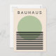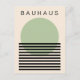 A minimalist modern art design in the Bauhaus style of a green sun with black horizontal lines on a beige background.