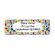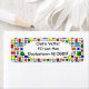 These return address labels have a Bauhaus design of a grid with squares and rectangles in red, green, blue, orange, light blue, yellow, and red.