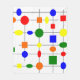This medium fleece blanket has a Bauhaus design of a grid with shapes in red, yellow, orange, green, and blue plotted on it.