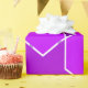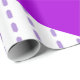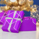 This wrapping paper has a Bauhaus design of overlapping hexagons in shades of purple on a field of white and dotted purple lines.
