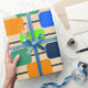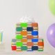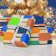 This wrapping paper has a Bauhaus design of several colours. Fun and bold.