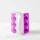 This mug has a Bauhaus design of overlapping triangles in purple, magenta, and pink.