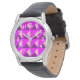 This men's watch has a Bauhaus design of overlapping triangles in purple, magenta, and pink.