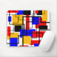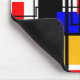 This mouse pad has a Bauhaus design of rectangles and squares with black lines traversing the design on a field of white.