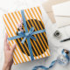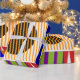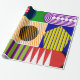 This wrapping paper has a Bauhaus design of shapes and lines making a collage in primary and secondary colours.
