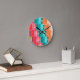This clock has a Bauhaus-inspired design of shapes and lines in different shades of mid-century modern colors.