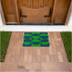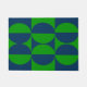 This doormat has a Bauhaus design of squares and circles in blue and green.