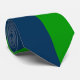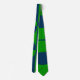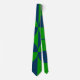 This tie has a Bauhaus design of squares and circles in blue and green.