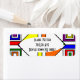 These return address labels have a Bauhaus design of lines, triangles, diamonds, and squares making a stained glass look in primary and secondary colors.
