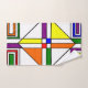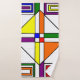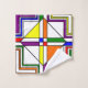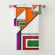 This towel set has a Bauhaus design of lines, triangles, diamonds, and squares making a stained glass look in primary and secondary colours.