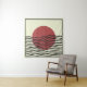 Minimalist Bauhaus wall art with a bold red sun and flowing black waves. Modern, abstract, and perfect for stylish home decor.