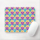 This mouse pad has a Bauhaus design of repeating triangles in gold, turquoise, teal, purple, and light gold. If you like the design but prefer different colours, message me.