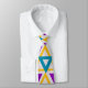 This necktie has a Bauhaus design of repeating triangles in gold, turquoise, teal, purple, and light gold. If you like the design but prefer different colours, message me.