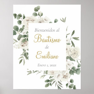 Elegant White Flowers Welcome Baptism Sign
